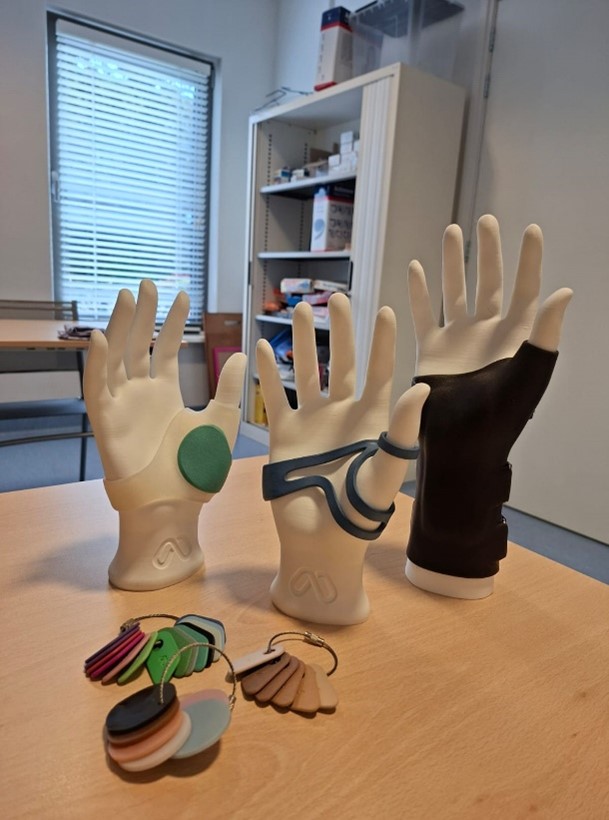 “De traditionele spalken zitten over het algemeen prettig, maar knellen soms en kunnen wat in de huid snijden,” aldus ergotherapeut Marlynn Vermeer. “De geprinte spalken voelen comfortabeler aan. Het materiaal is iets flexibeler en met het bandje op de handrug kan de patiënt de spalk zelf eenvoudig wat losser of strakker zetten. Dat vergroot het comfort aanzienlijk.”