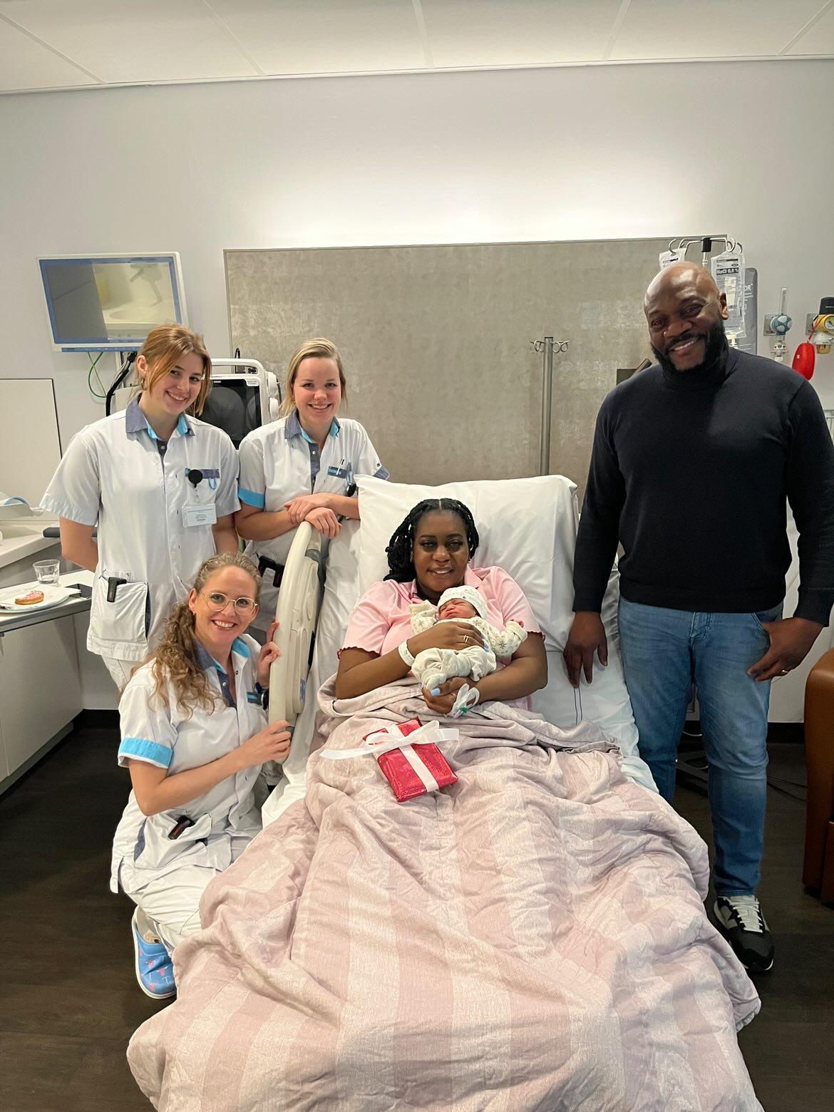 De kersverse ouders werden verrast met een speciaal rompertje. Ook zij waren aangenaam verrast. Verloskundige Anne-Laura: “De bevalling verliep voorspoedig en Bloom kon al snel samen met haar ouders naar huis.” De familie Kazadi kijkt positief terug op de bevalling: “We hebben goede begeleiding gehad en zijn daar heel dankbaar voor.”